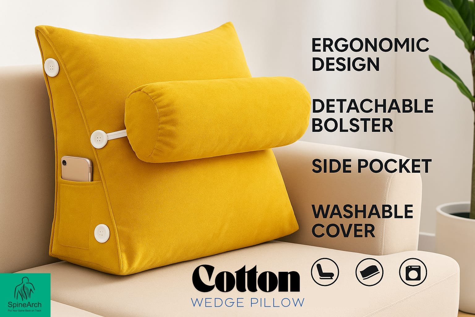 Product Name: COUPLE Wedge Cotton Pillow Triangular With Lumber Support Half Moon (Full Slope)